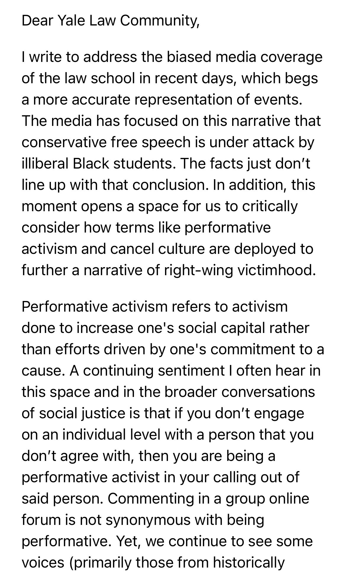 David Lat On Twitter 1 Here S The Statement About The Yale Law School Email Controversy That Marina Edwards President Of The Yale Black Law Students Association Posted To The Wall The Yls